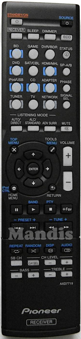original remote control AXD7719 (8300771900010-IL) used for av receiver for the brand Pioneer. This is an original remote control.