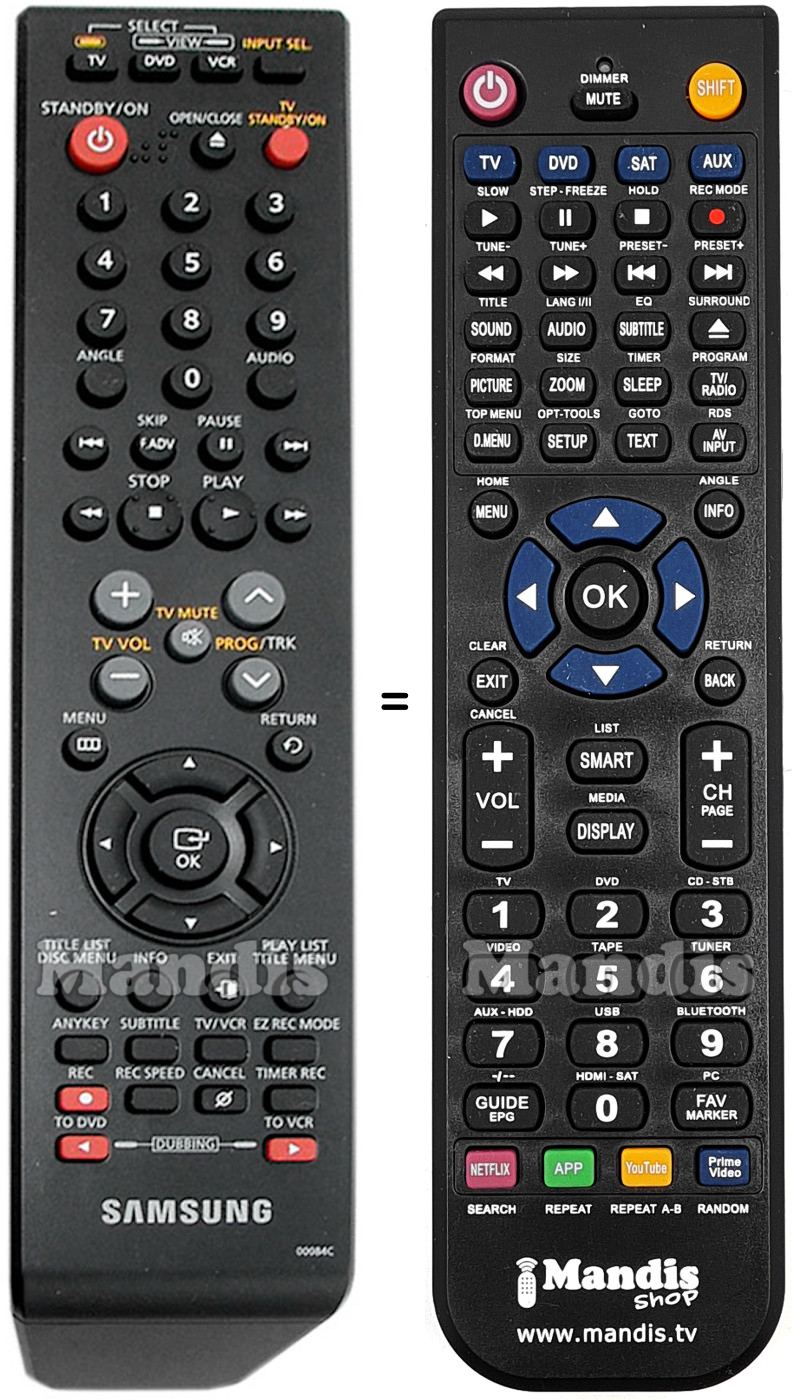 This remote control replaces most of the functions of your 00084C (AK59-00084C). It is not a universal remote control, but a copy with most of the buttons and functions of your original.