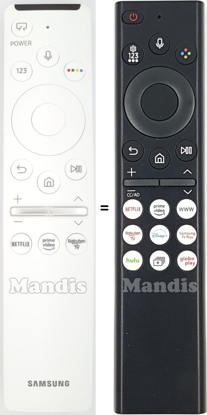 Modernize your Samsung Smart TV with this elegant and functional remote control. It offers complete control and comfort thanks to its voice technology and ergonomic design. It works perfectly with all Samsung TVs with Bluetooth, ensuring a reliable and powerful connection. Featuring direct access buttons for your favorite apps like Netflix and Prime Video.