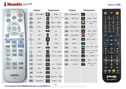 Below, we will show you the correspondence between each button on the original remote control and the button that performs the same function on the replacement remote control. In some cases, you may need to press the SHIFT key before pressing another button to perform certain actions. These additional functions are often not widely used and are included to facilitate understanding of the replacement remote control, or because the original remote control has more buttons than its equivalent.