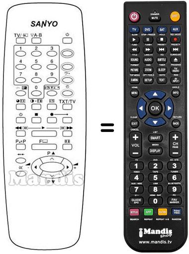 Remote control to replace the original and all its functions.