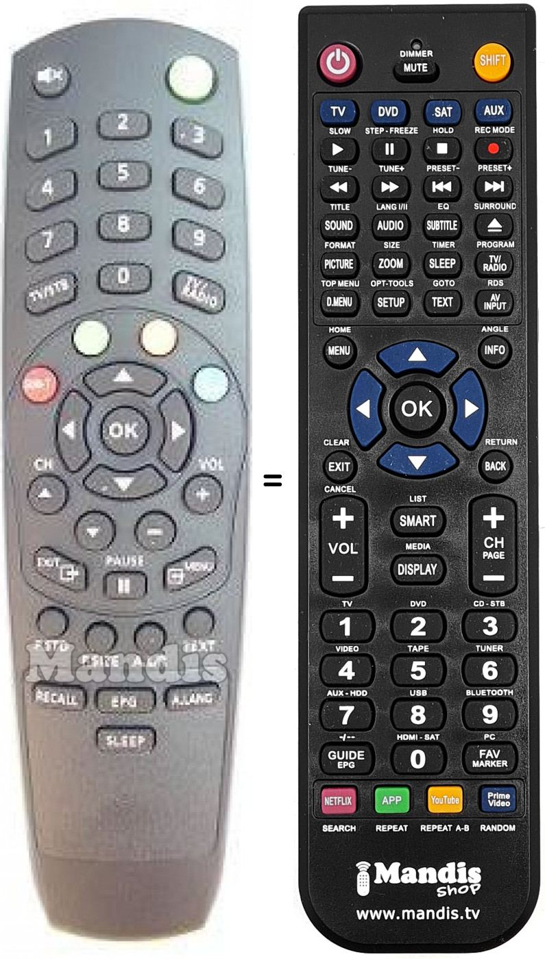 Remote control to replace the original and all its functions.