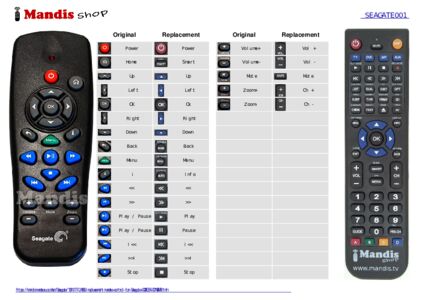 Below, we will show you the correspondence between each button on the original remote control and the button that performs the same function on the replacement remote control. In some cases, you may need to press the SHIFT key before pressing another button to perform certain actions. These additional functions are often not widely used and are included to facilitate understanding of the replacement remote control, or because the original remote control has more buttons than its equivalent.