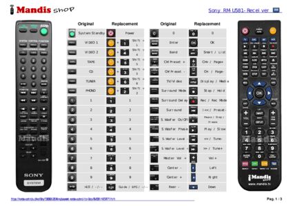 This remote control fully replaces your RM-U581 (147574711) and offers all the functions of the original.