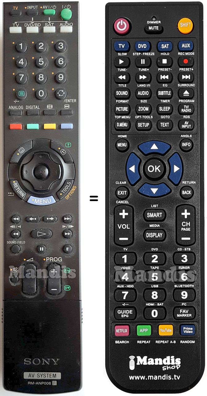 This remote control replaces most of the functions of your RM-ANP006. It is not a universal remote control, but a copy with most of the buttons and functions of your original.