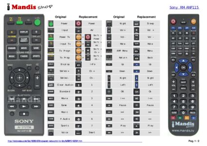 This remote control fully replaces your RM-ANP115 (149273811) and offers all the functions of the original.