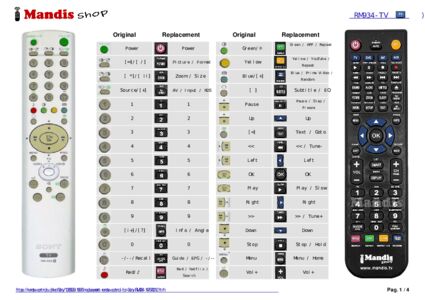 This remote control fully replaces your RM-934 (147670012) and offers all the functions of the original.