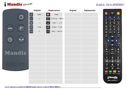 Below, we will show you the correspondence between each button on the original remote control and the button that performs the same function on the replacement remote control. In some cases, you may need to press the SHIFT key before pressing another button to perform certain actions. These additional functions are often not widely used and are included to facilitate understanding of the replacement remote control, or because the original remote control has more buttons than its equivalent.