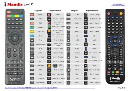 Below, we will show you the correspondence between each button on the original remote control and the button that performs the same function on the replacement remote control. In some cases, you may need to press the SHIFT key before pressing another button to perform certain actions. These additional functions are often not widely used and are included to facilitate understanding of the replacement remote control, or because the original remote control has more buttons than its equivalent.