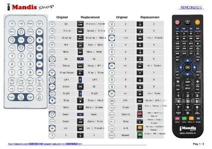 A document is included to help you use the new remote control easily, showing the button correspondence.