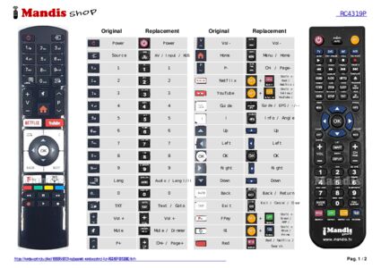 1. Look at the images of the two remote controls: the original (left) and the replacement (right).