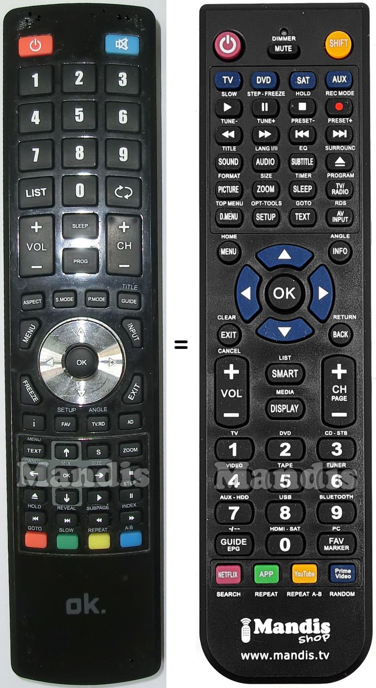 This remote control fully replaces your OK001 and offers all the functions of the original.