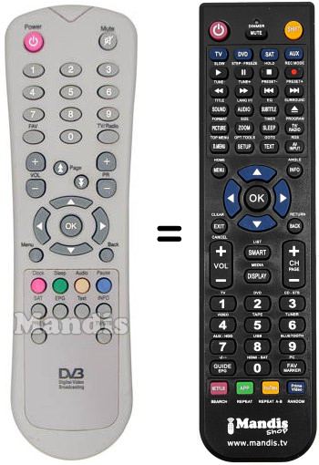 Télécommande qui remplace celle d'origine car elle possède les mêmes fonctions.