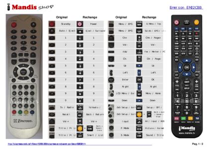 Un document est inclus pour vous aider à utiliser facilement la nouvelle télécommande, en indiquant la correspondance des boutons.