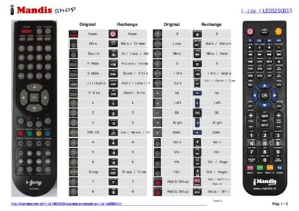 Un document est inclus pour vous aider à utiliser facilement la nouvelle télécommande, en indiquant la correspondance des boutons.