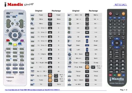 Cette télécommande remplace la plupart des fonctions de votre RCT 311 AC 1. Il ne s'agit pas d'une télécommande universelle, mais d'une copie avec la plupart des touches et des fonctions de votre télécommande d'origine.