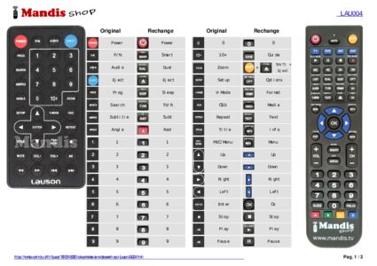 Un document est inclus pour vous aider à utiliser facilement la nouvelle télécommande, en indiquant la correspondance des boutons.