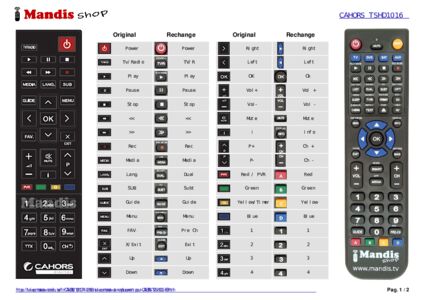 Accueil > Marques > Télécommandes CAHORS > Télécommande pour CAHORS TVS 8100 HD > Répartition interactive des touches CAHORS TVS 8100 HD