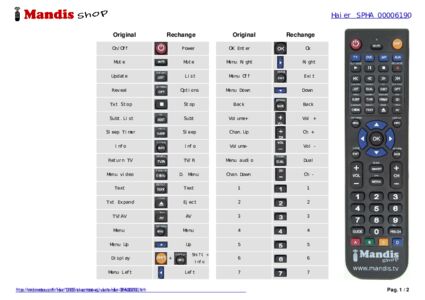 Accueil > Marques > Télécommandes Haier > Télécommande pour Haier SPHA 00006190 > Répartition interactive des touches Haier SPHA 00006190
