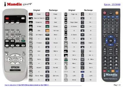 Accueil > Marques > Télécommandes Epson > Télécommande pour Epson 1515068 > Répartition interactive des touches Epson 1515068