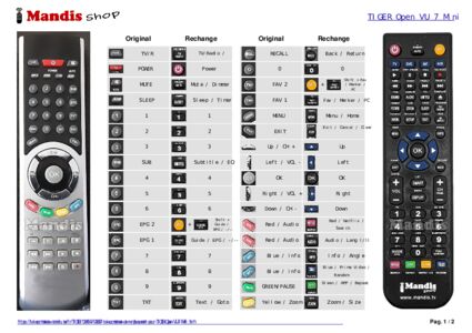 Cette télécommande remplace entièrement votre Open Vu 5 et offre toutes les fonctions de l'originale.