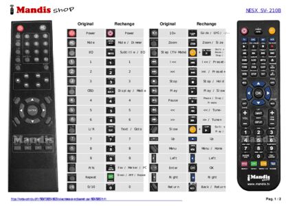 Un document est inclus pour vous aider à utiliser facilement la nouvelle télécommande, en indiquant la correspondance des boutons.