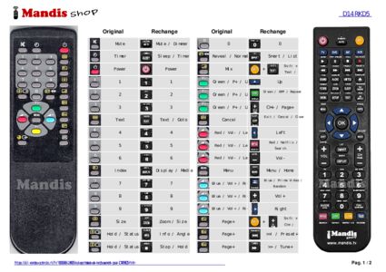 Un document est inclus pour vous aider à utiliser facilement la nouvelle télécommande, en indiquant la correspondance des boutons.