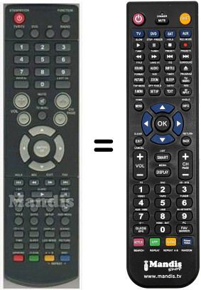 Télécommande qui remplace la télécommande d'origine 043A55656W121 car elle possède les mêmes fonctions.