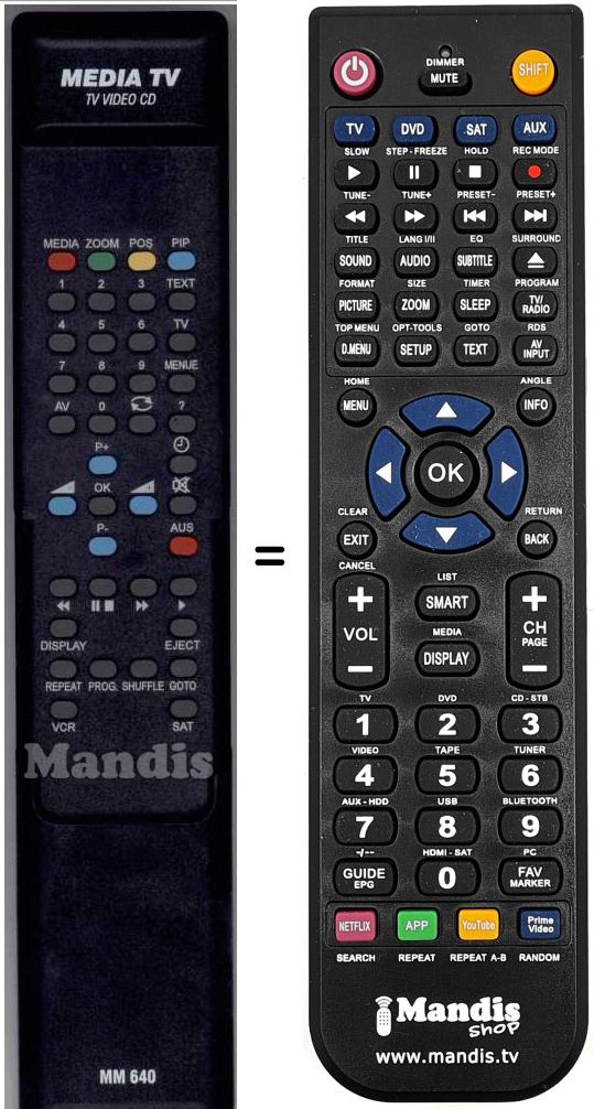 Télécommande qui remplace celle d'origine car elle possède les mêmes fonctions.