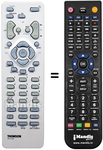 Télécommande qui remplace celle d'origine car elle possède les mêmes fonctions.