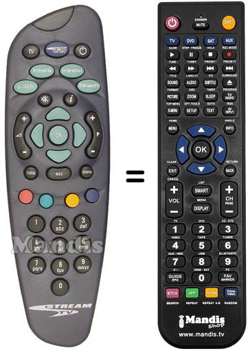 Télécommande qui remplace celle d'origine car elle possède les mêmes fonctions.