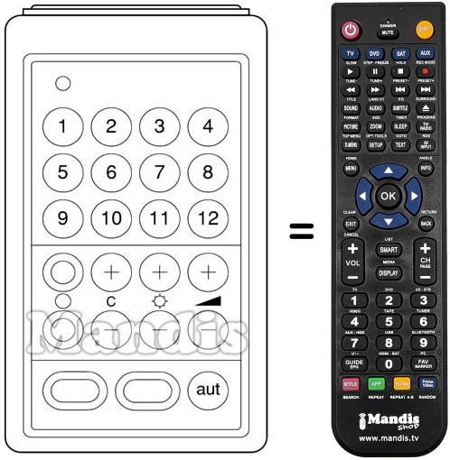 Télécommande qui remplace celle d'origine car elle possède les mêmes fonctions.