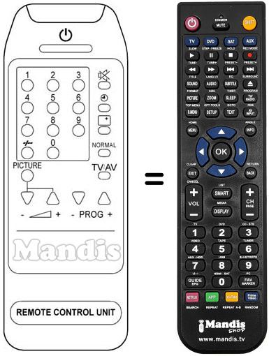 Télécommande qui remplace celle d'origine car elle possède les mêmes fonctions.