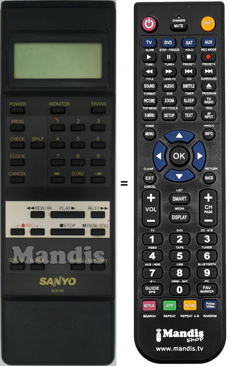 Télécommande qui remplace celle d'origine car elle possède les mêmes fonctions.