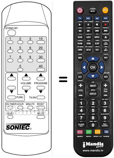 Télécommande qui remplace celle d'origine car elle possède les mêmes fonctions.