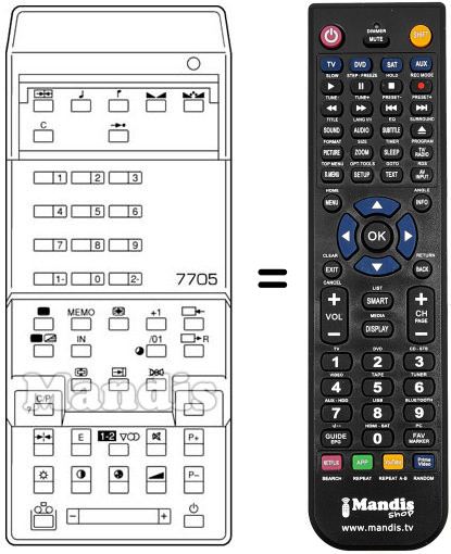 Télécommande qui remplace celle d'origine car elle possède les mêmes fonctions.