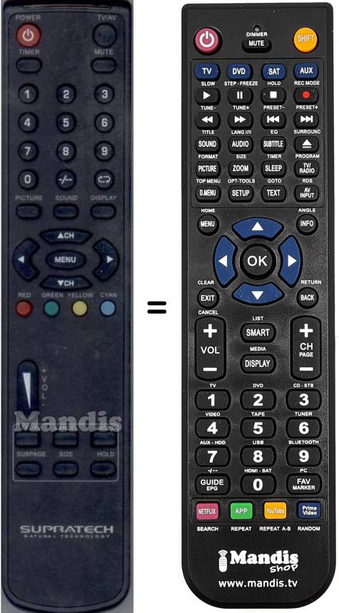 Télécommande qui remplace celle d'origine car elle possède les mêmes fonctions.