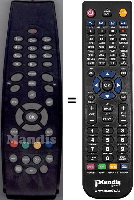 Télécommande qui remplace celle d'origine car elle possède les mêmes fonctions.