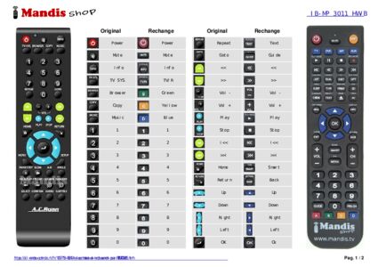 Un document est inclus pour vous aider à utiliser facilement la nouvelle télécommande, en indiquant la correspondance des boutons.