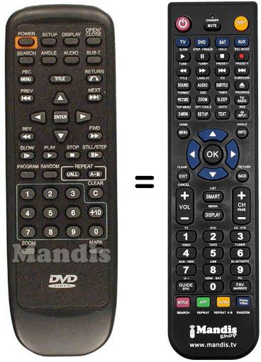 Télécommande qui remplace celle d'origine car elle possède les mêmes fonctions.