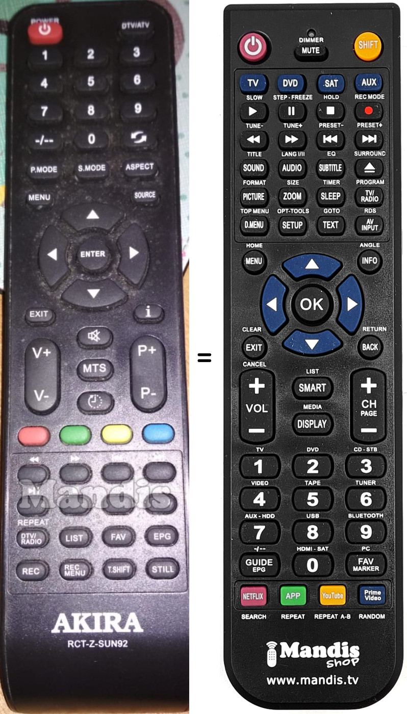 Télécommande qui remplace celle d'origine car elle possède les mêmes fonctions.