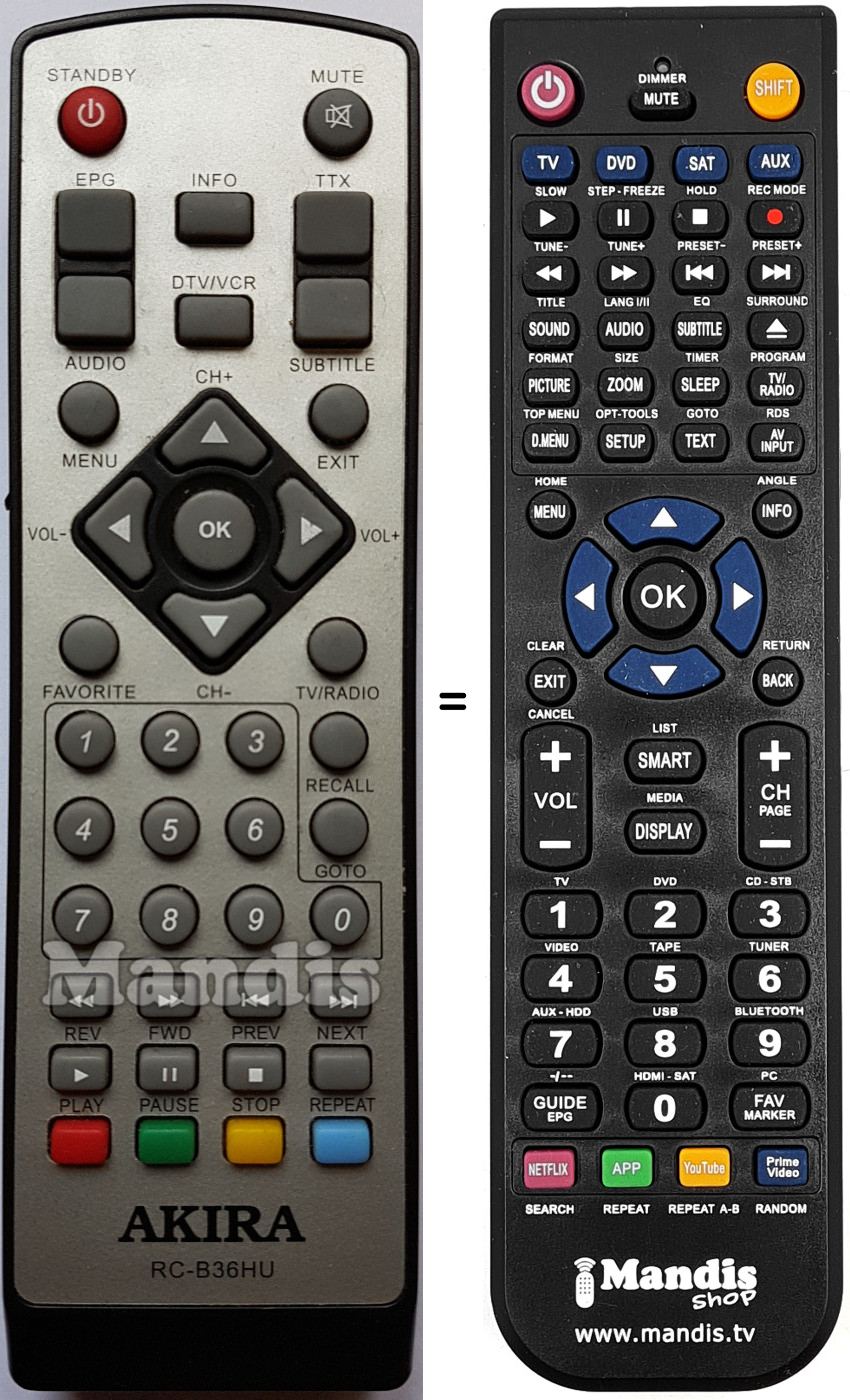 Télécommande qui remplace celle d'origine car elle possède les mêmes fonctions.