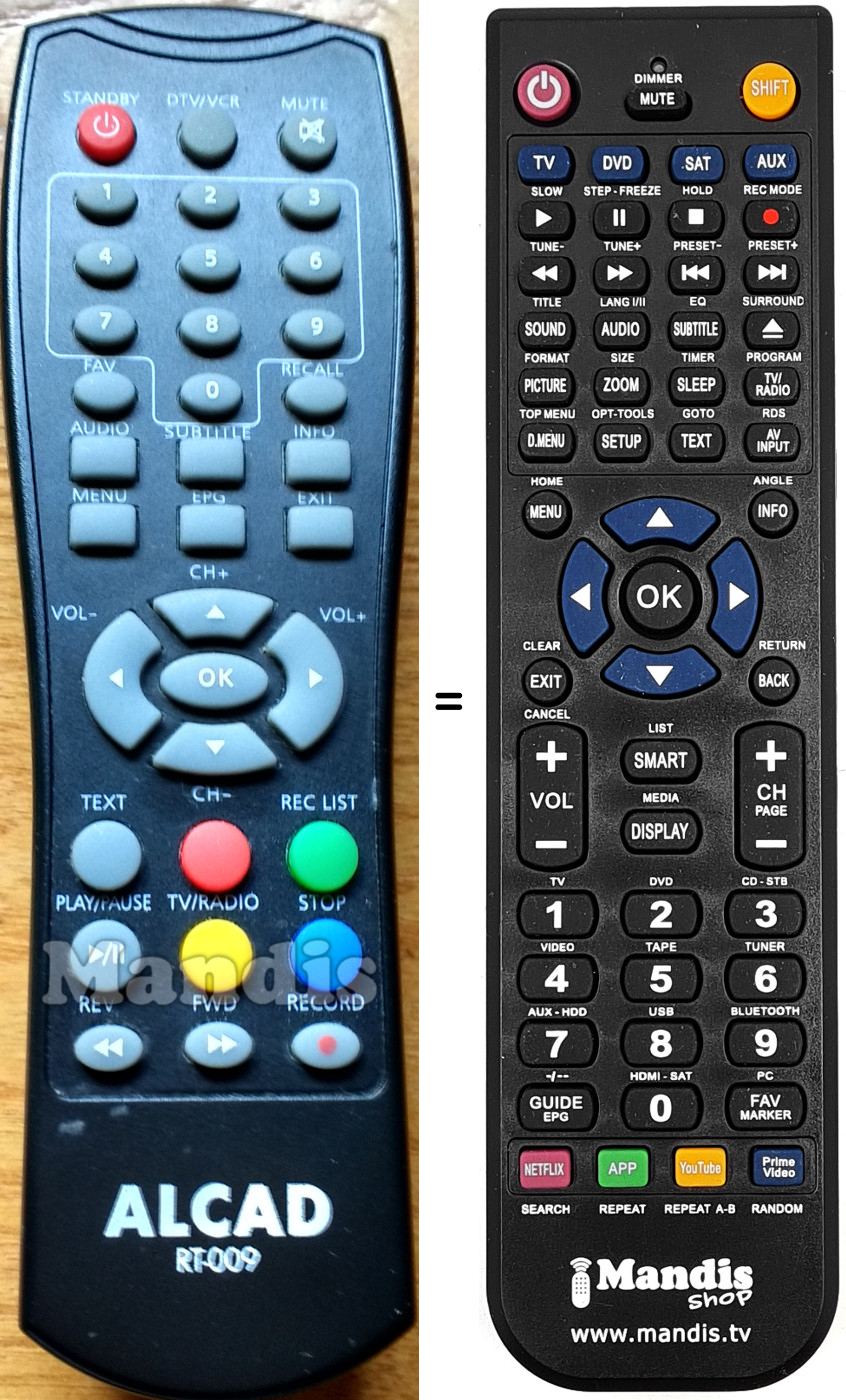 Télécommande qui remplace celle d'origine car elle possède les mêmes fonctions.