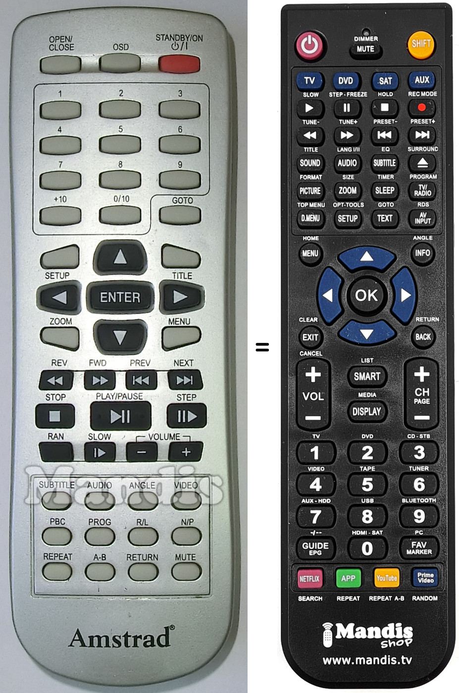 Télécommande qui remplace celle d'origine car elle possède les mêmes fonctions.