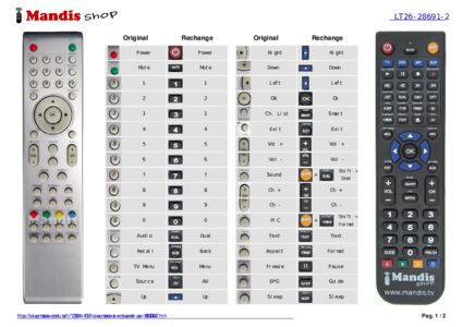 Un document est inclus pour vous aider à utiliser facilement la nouvelle télécommande, en indiquant la correspondance des boutons.