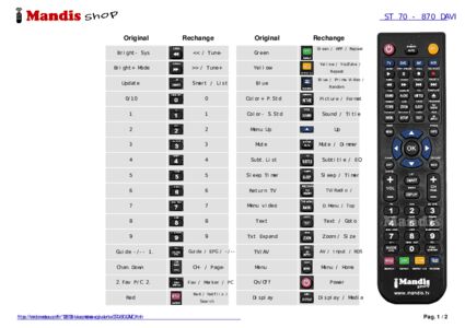 Un document est inclus pour vous aider à utiliser facilement la nouvelle télécommande, en indiquant la correspondance des boutons.