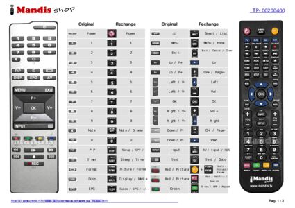 Un document est inclus pour vous aider à utiliser facilement la nouvelle télécommande, en indiquant la correspondance des boutons.