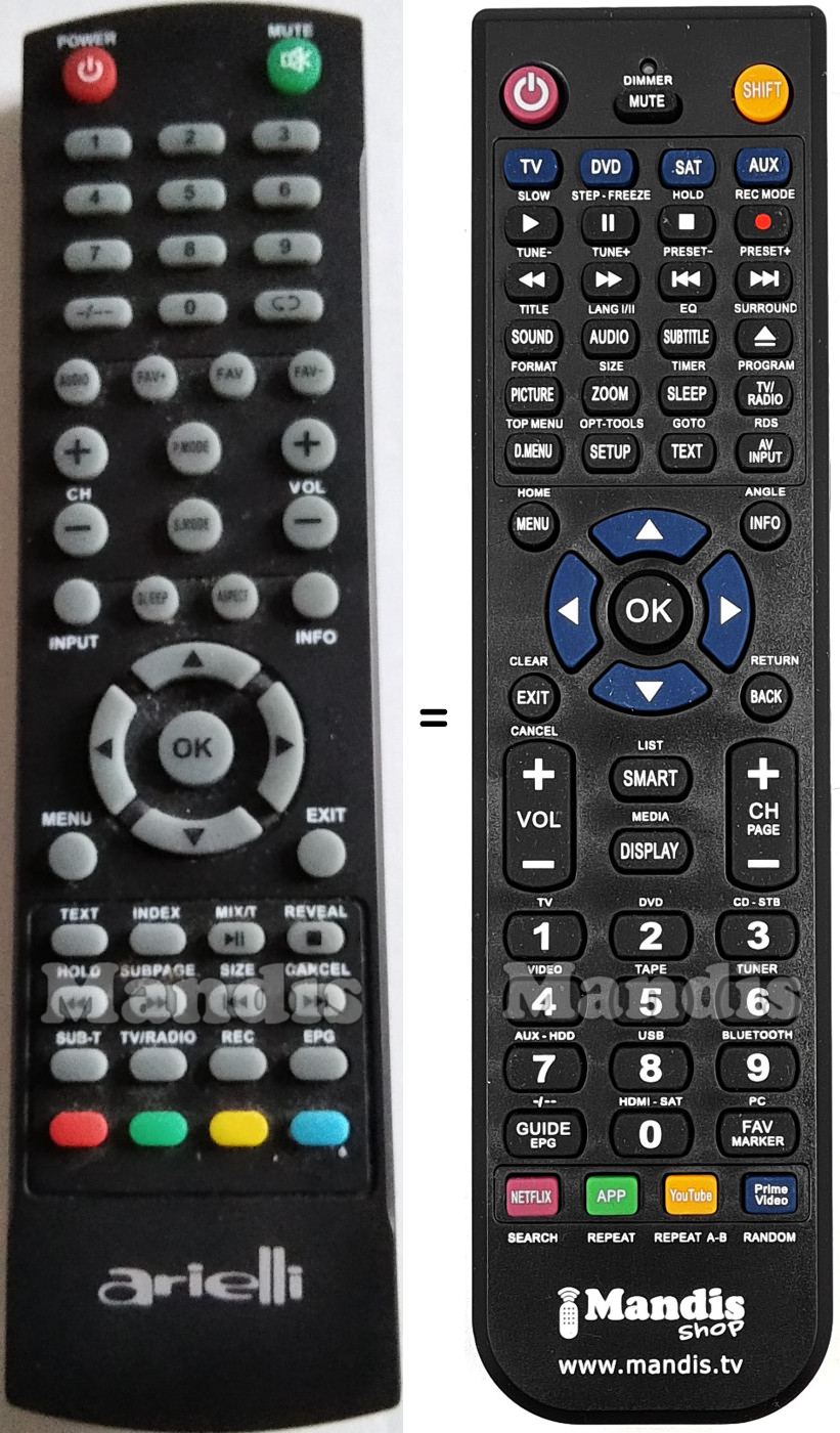 Ci-dessous, nous vous montrerons la correspondance entre chaque bouton de la télécommande d'origine et le bouton qui effectue la même fonction sur la télécommande de remplacement. Dans certains cas, vous devrez peut-être appuyer sur la touche SHIFT avant d'appuyer sur un autre bouton pour effectuer certaines actions. Ces fonctions supplémentaires sont souvent peu utilisées et sont incluses pour faciliter la compréhension de la télécommande de remplacement, ou parce que la télécommande d'origine comporte plus de boutons que son équivalent.