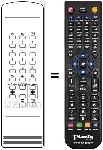 Télécommande qui remplace celle d'origine car elle possède les mêmes fonctions.