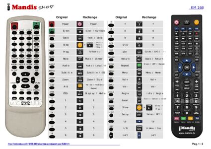 Cette télécommande remplace entièrement votre KM 168 et offre toutes les fonctions de l'originale.